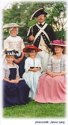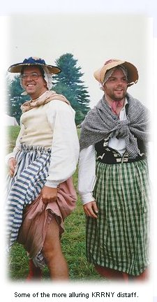 The Royal Yorkers belong to several umbrella organizations. The Royal Yorker Refugees follow the exacting clothing guidelines set down by the Brigade of the American Revolutionfor their Civilian Class Membership with only a few of our own deviations. We are very proud of our section of the regiment and welcome discriminating participants who are happy to abide by our standards. Membership in the Loyal Refugees involves a one-timefee of $10 for a starter kit and a yearly fee of $5 to help us with our fabric fund and help fund the Distaff Bulletin, our newsletter, which is published 2 to 6 times a year as events warrant. Our section has a serjeant and a corporal and a position on the Yorker Executive Committee. Most of the women who join the Royal Yorkers do so through an affiliated man, however this does not have to be the case. If you have the money, time, sewing skills and the historical interest, please contact Amanda Moore.
