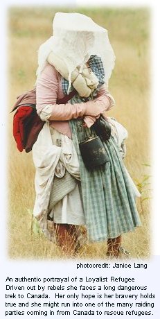 Once a female refugee reached one of the British bases in Quebec, in order to receive government aid she had to prove affiliation with a man who served the cause. Most women had been stripped of all their possessions or had been forced by the hardships of the route to leave them behind. All of them arrived in need of food, clothing and shelter. This was grudgingly provided by a Military Adminstration whose priorities lay elsewhere.