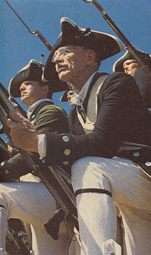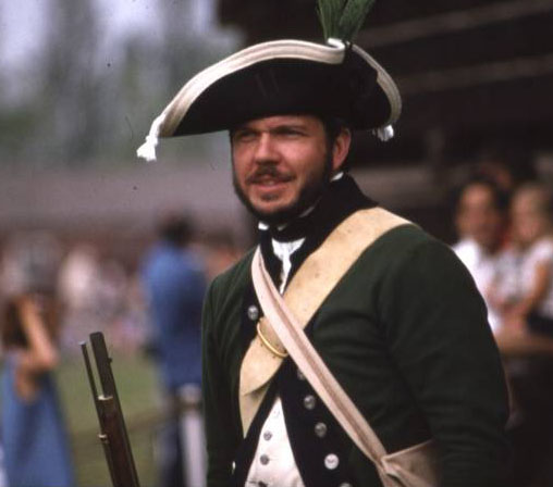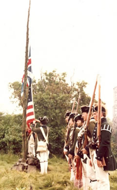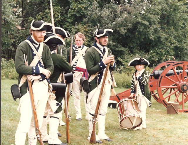 Finn and A/4 Wayne Heideman were both great comedians with very sharp tongues and ready wits, so there was nothing boring about those first few years. Finn retired from the unit after about five years. The second photo shows Finn and the red-bearded Wayne ready to move into battle for the 200th anniversary commemoration of the Royal Yorkers’ bloodiest engagement at Oriskany. Looking at their threatening visages, one can see that the rebels didn’t find much humour there.